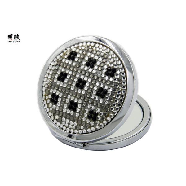Sliver Pocket Mirror Round Shaped With White And Black Crystal